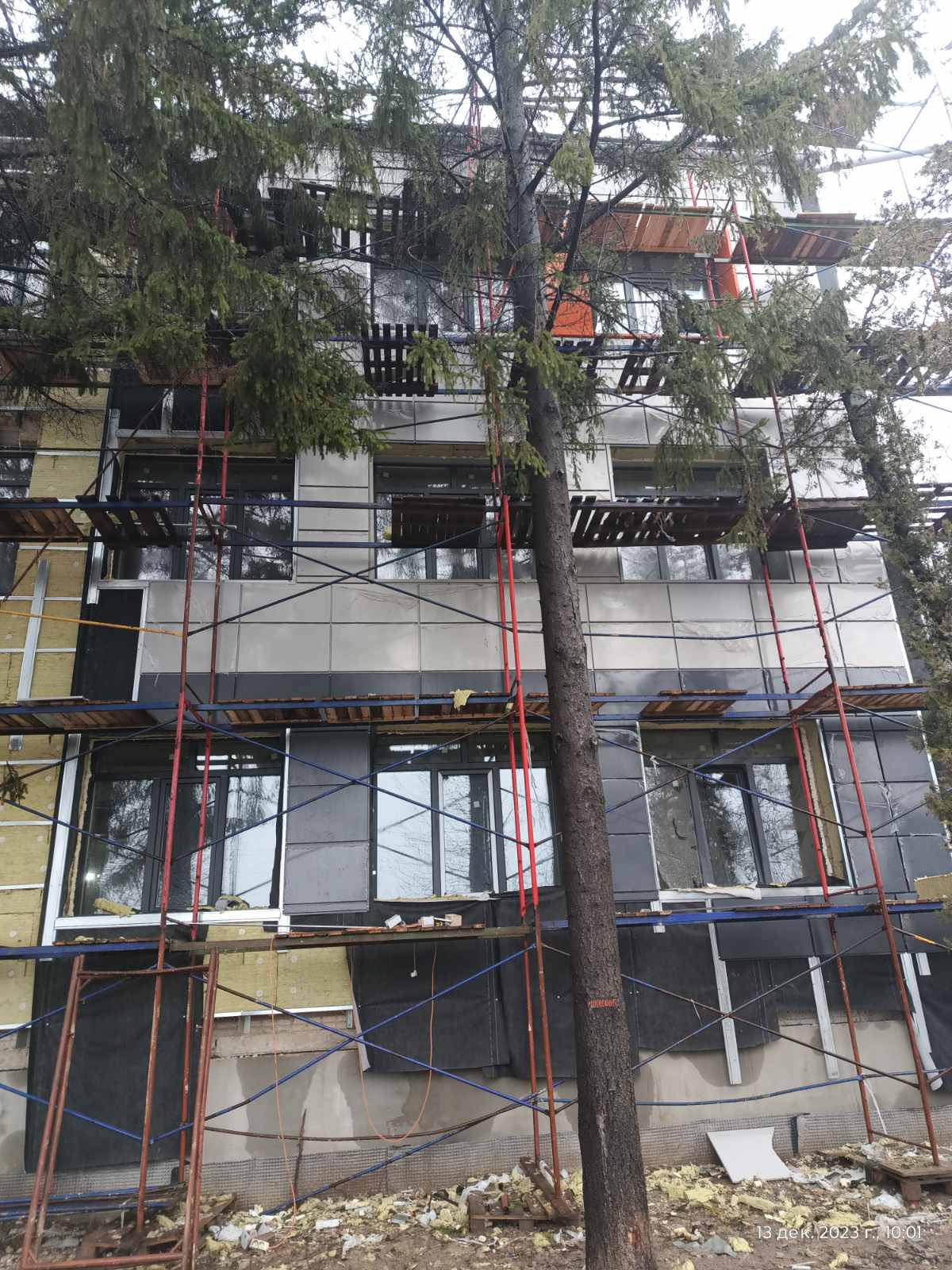 Масштаби дозволили вправадити класчну технологію поточного будівництва, на одному фото видно декілька етапів.